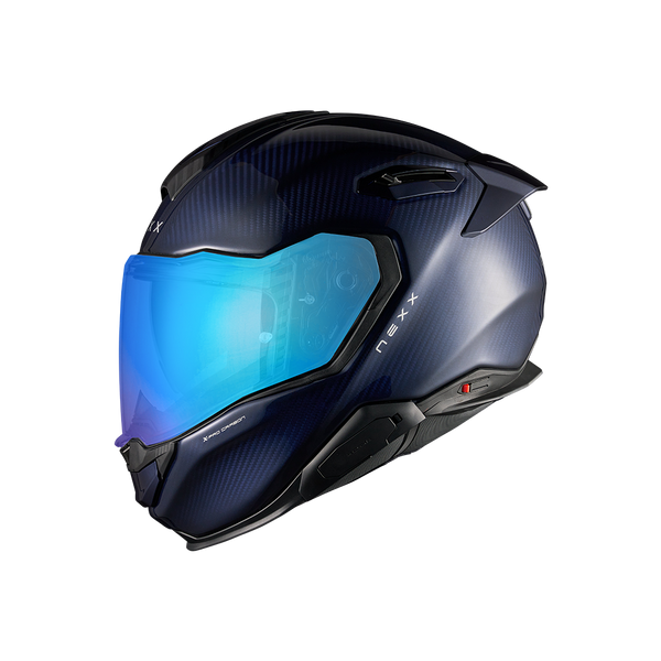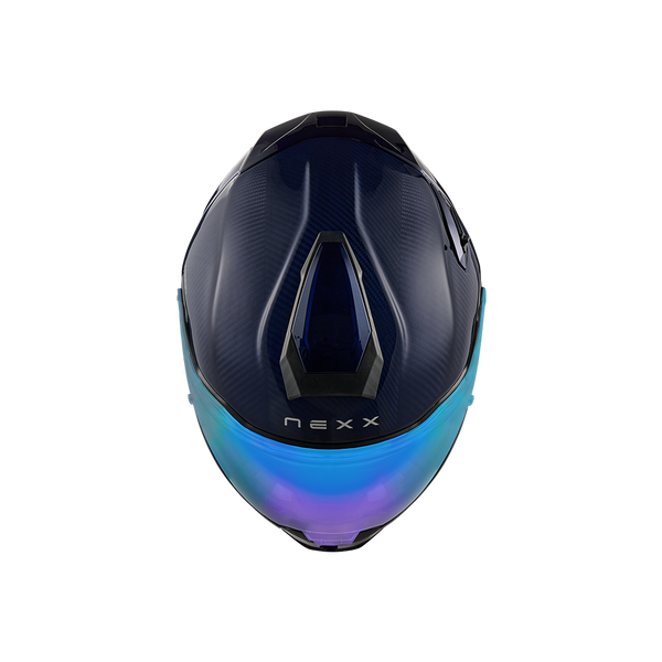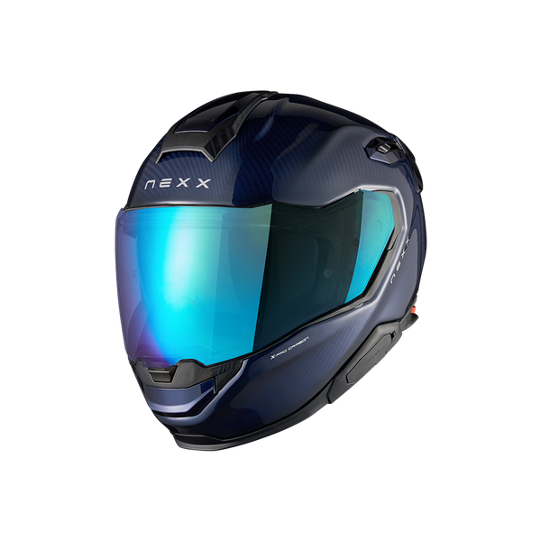 This helmet is supplied with an additional iridium blue race visor